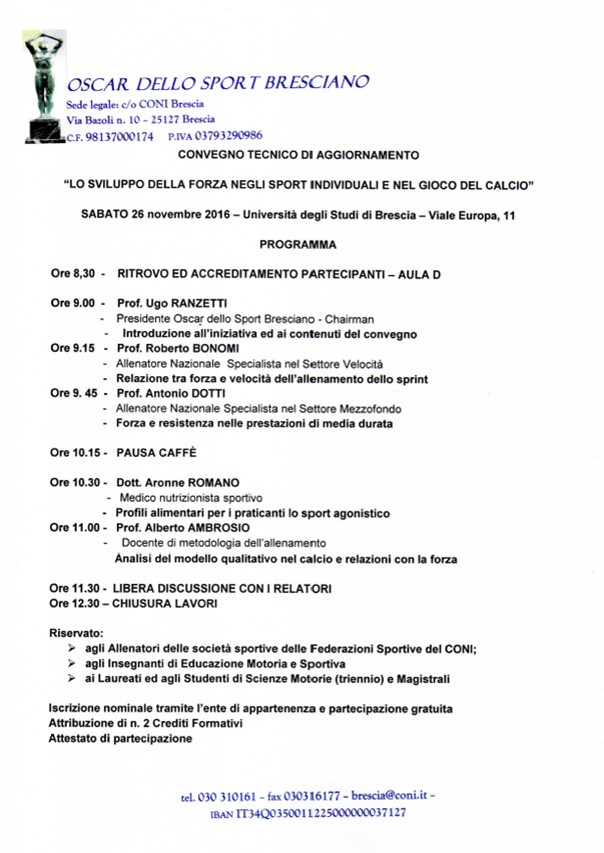 Lunedì 21 Novembre Conferenza Zona e Sport presso Università di medicina a Brescia.